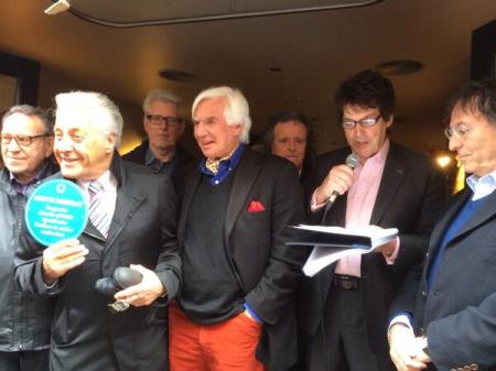 On Sunday April 6 th 2014 the British Plaque Trust unveiled a Blue Plaque at The Gioconda, 9,Denmark St, London, the street known as ‘Tin Pan Alley’. The plaque honours songwriters and publishers to whom this street was home between 1911 and 1992. Many of the world’s most famous songwriters and publishers attended to witness Donovan, inductee of the US Rock & Roll Hall of Fame and US Songwriters Hall of Fame, unveil the plaque. The multi-million selling artist wrote and recorded a song for the occasion, called ‘Tin Pan Alley‘ which he performed on the day. The Gioconda was the hub of the street, where the young hopefuls like David Bowie, Elton John and the Rolling Stones would meet. The Beatles recorded on this street and got their first publishing deal, as did Paul Simon. The Stones, Donovan, the Kinks and Bowie recorded all their early materia here. Hendrix rehearsed here the Sex Pistols lived here and the New Musical express and Melody Maker began in Tin Pan alley.