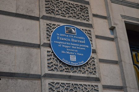126 Piccadilly has long been part of the Cavalry & Guards Club, which is where this plaque to Nipper was erected in October 2014 by the British Plaque Trust.